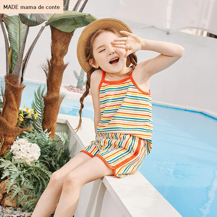 라이트테리 소재를 사용해 가볍지만 흡습성이 좋고 편한 레인보우패턴 셋업입니다. 따로 또 같이 입을 수있는 활용도가 좋은 아이템입니다,