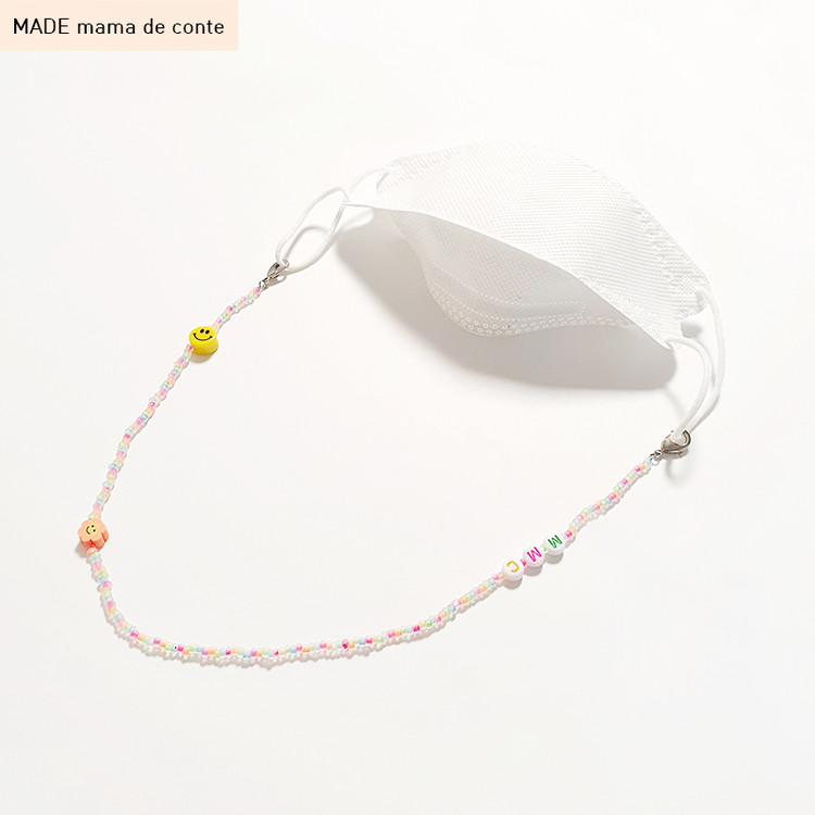 가볍고 귀여운 장식과 컬러가 아이들이 좋아할 마스크 스트랩입니다.