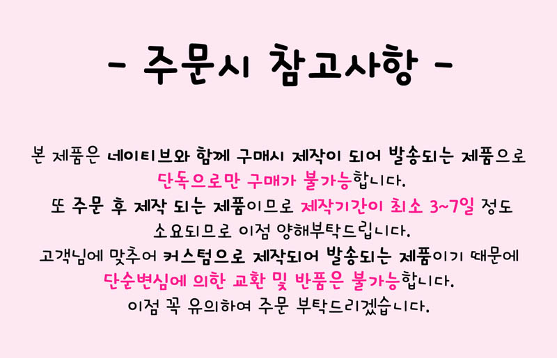 주문 후 영업일 기준 3~7일 소요됩니다.