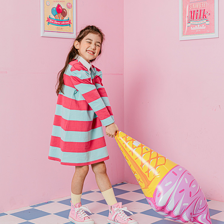 상큼한 스트라이프에 사랑스러운 퍼프 소매의 원피스입니다.